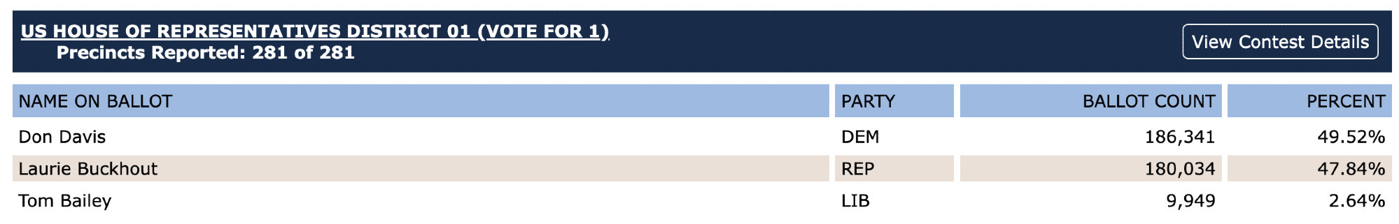 Democratic Representative Davis won NC-1 by less than two percentage points in 2024; in the same year, President Trump won it by around 3 percentage points. Joe Biden won NC-1 in 2020 & Senator Budd (R) won it in 2022. It doesn’t get much more competitive than that. There’s even an argument to be made that if it were not for Libertarian Tom Bailey (who did not live in the district), Davis might have lost & none of this would be happening.2