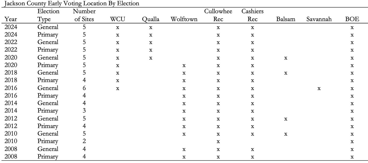 Two weeks ago, the Jackson County Board of Elections indicated that they are considering eliminating this site and will take a vote on the 2026 primary early voting plan on Tuesday, December 9th.3
